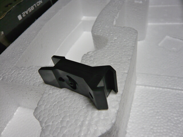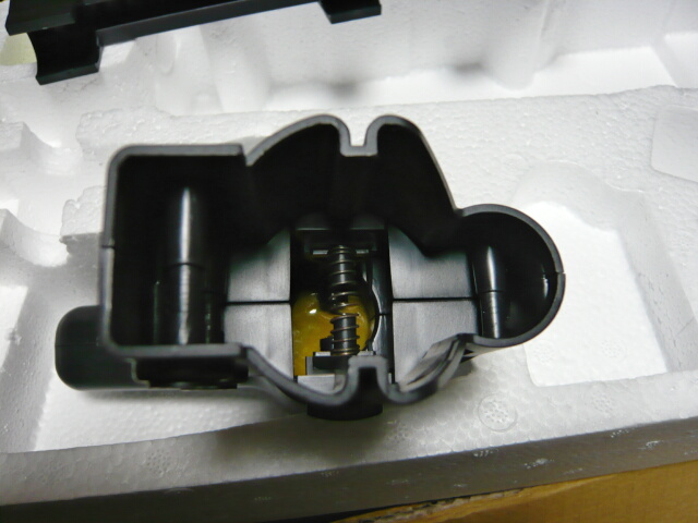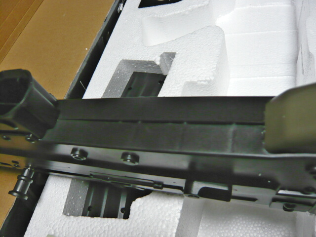 発泡スチロールから取り出そうと、フロントサイト辺りから持ち上げたらバキッという音・・・どっか折れたようです。