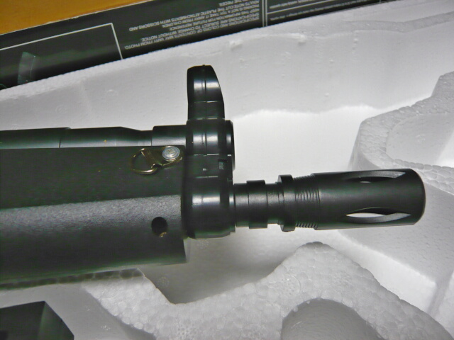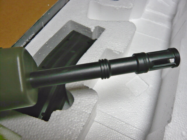 アウターバレルはプラ製。ディテールはトイスターのものより多めですが一体でM14逆ネジが仕込んであったりはせず、インナーバレルはハンドガードの中ほどくらいまでしかありません。