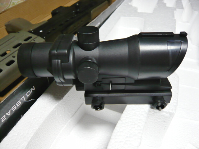 SUSATはありませんが代わりに付属する酷く安っぽいトリジコンACOGレプリカ。