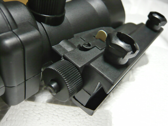 下面は20mmレイルに対応したレールになっており、手で回せるネジで簡単に着脱が出来るようになっています。