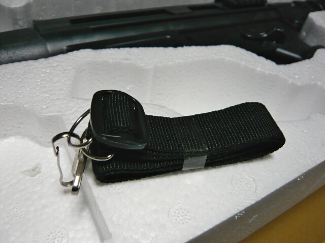 付属のスリング。金具が汎用品すぎる・・・スリング自体も幅2cmと細く思いっきり民生品の流用ですが付いてるだけマシでしょうか。付属品がやっつけながらも色々入ってるのが中華製トイガンの面白いところでもあります。