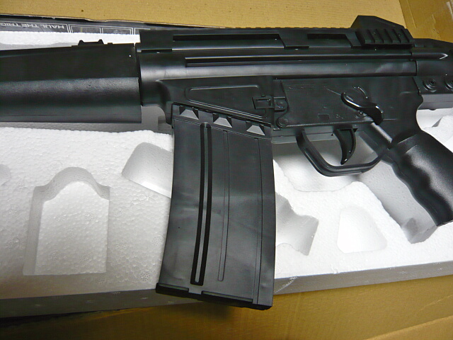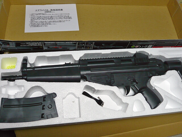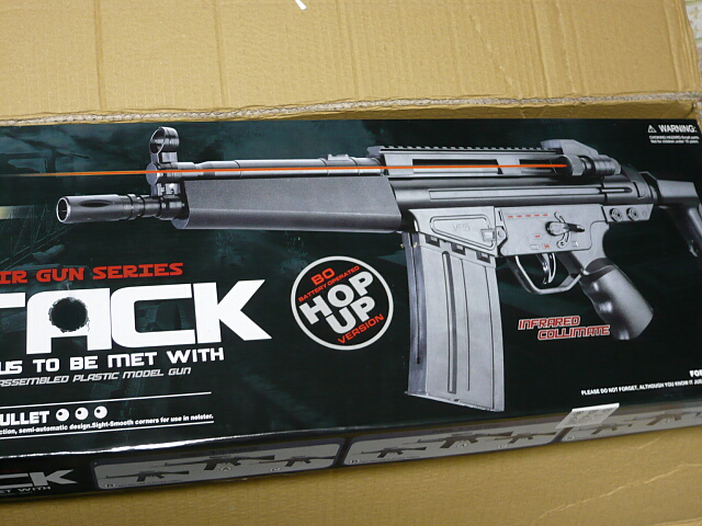 これを買った通販サイトの写真とは外箱が少し違いウチに来たものにはHOPUPと誇らしげに書かれていて、内容もゴーグルやレーザーサイトが無く代わりにスリングとバリだらけの毒毒しい蛍光黄色のBB弾が入っているなど、構成が変更された後の品なのかもしれません。このMC51風はストックが残念ですがG3風の方は固定ストックなので十分に「買い」だと思います。値段倍ですがそれでも2千円ですぜ?両方買っても3千円。恐ろしく侮れない一品です。
