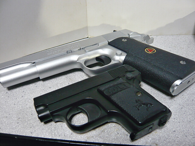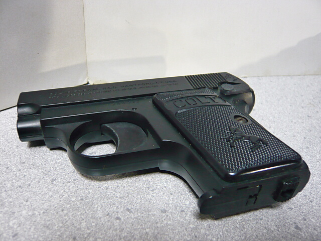 当時私が自分で買ったのはワルサーPPK、ブローニングM1910、ダブルデリンジャーの3つで、その他にもモーゼルHScや今回のコルト25オート等がありました。PPKは扱い易いもののパワーが全然無く、ブローニングはトリガーがヤケクソに重く、ダブルデリンジャーは2本あるバレルの片側がマガジンになっているなど、それぞれがやけに個性的だったのを記憶しています。