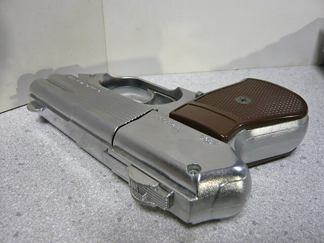 このCOP357は前出のマルシンコルト25オートと一緒に押入れから出てきたもので、私が買ったものではありません。しかし造りを見るにそれほど高価なものではないと思われます。表面のメッキは強靭で年次が経過しているにもかかわらず剥がれ一つないものの、仕上げは銃器というよりは昭和の時代のオモチャといった風情で、やや梨地掛かっていて角もダルく、所々に目立つゲート跡などもあるお世辞にも高級感があるとは言えないものです。