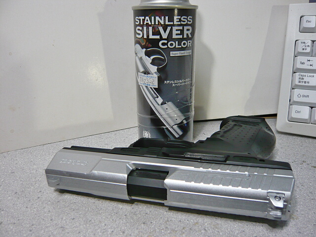 スライドが簡単に外せるのでついやりたくなるのが塗装。キャロムのステンレスシルバースーパーハードタフで塗装しました。元々は黒いつや消しのスライドです。