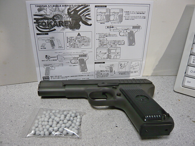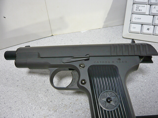 トカレフのトイガンはかつてハドソンからモデルガンが出ていた程度で、現物は見たことが無かったのですが、第一印象は思ったより小さく、特にグリップの短さが目に付きました。握ってみてもグリップが短く、そういえばユーゴスラビア版トカレフのツァスタバM57は装弾数が1発多い分グリップが伸ばされていた気がします。