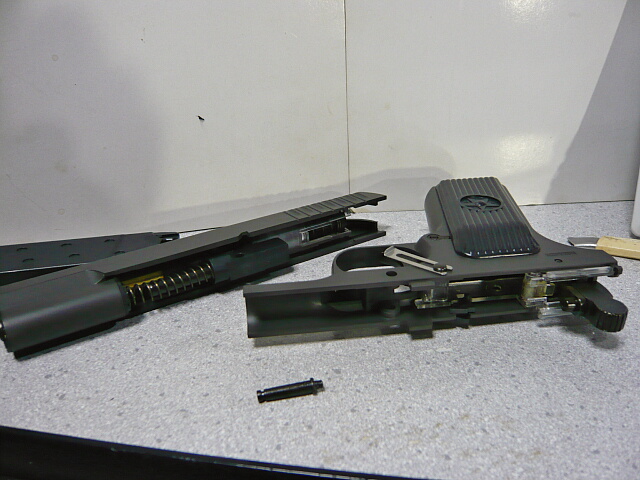 ただこれ以上の分解はちょっとよくわかりませんでした。多分バレルを前へ引っ張りながらシリンダーを外せば全部はずれるんだと思います。リコイルスプリングはバネレートが不必要に高いので適当に合うバネに置き換えてもいいかも。