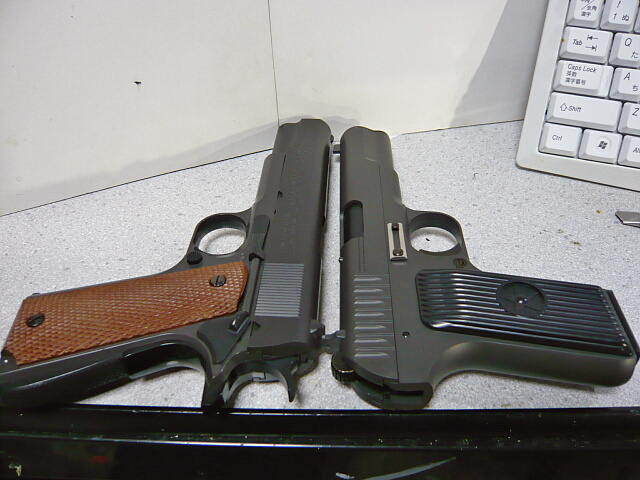マルイのエアコキM1911A1ミリタリーと。トカレフの方が少し小さめです。