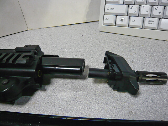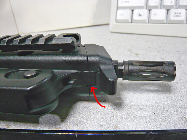 銃口に取り付けられたフラッシュハイダーは金属製。他のほとんどの部分はABS樹脂製です。
