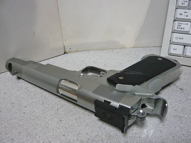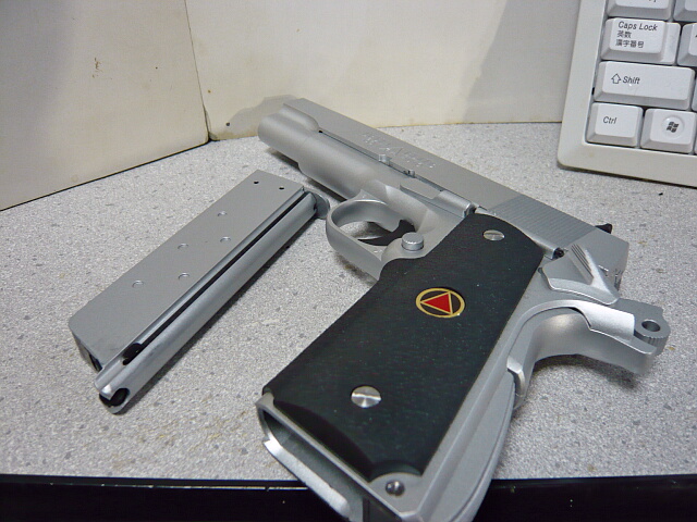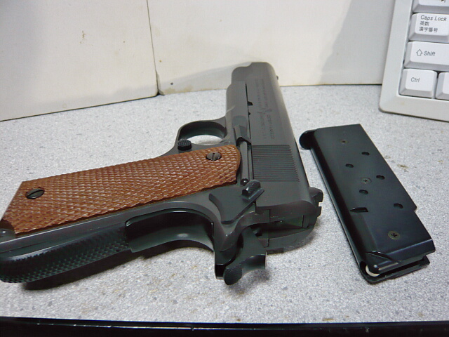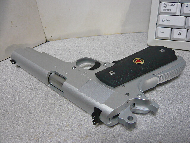 実射性能の方も十分で、そこそこ連射にも耐えるスタミナもあります。しかしこの銃の見所はそれに伴う動作がいちいちカッコイイ点。重いスライドからくるドスンドスンと手首に響くリコイル、撃ち尽くしてホールドオープンする時もドカンとスライドストップがかかり、再びマガジンを挿してスライドストップを解除すると重いスライドがそれこそ銃が持ってかれそうな勢いで前進・・・