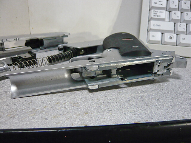 上面レイルをはずすと、チャージングハンドルに付いてるバネの付け根が折れていました。