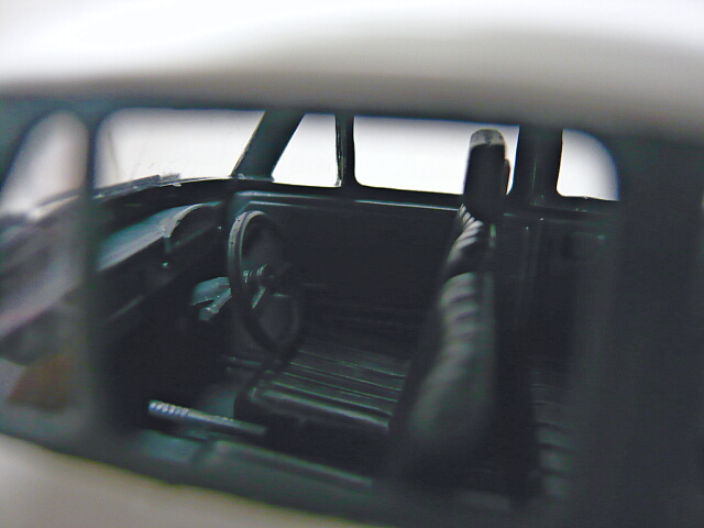 内装もタイヤブラックで真っ黒です。運転席シートのみヘッドレストをでっちあげておきました。