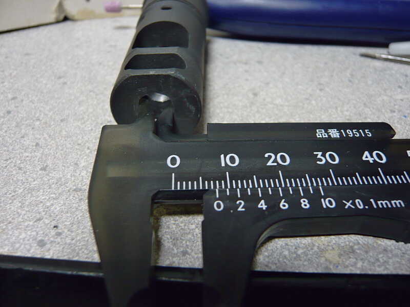 銃口側は8mmちょっと。上画像の真鍮インナーバレルの外径ギリギリくらい。