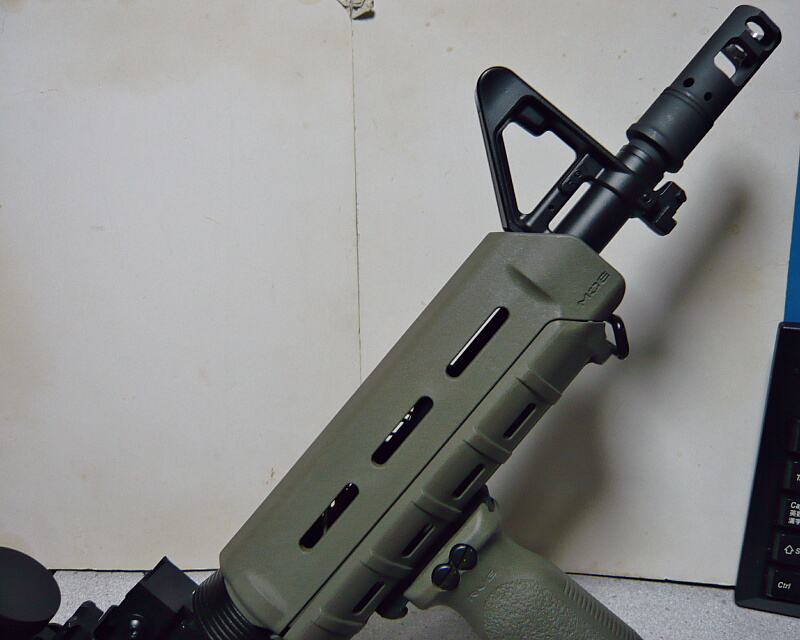 アウター前端ギリギリかちょっと出てるくらいの銃にしか使っちゃダメなハイダーのようですね。ウチのAKはインナーバレルが短いのでとても実用になりません。仕方ないので格好ではちょっと劣りますが銃口の広い四つ叉ハイダー(これもBIGDRAGONのもの)で妥協しておきましょう。トホホ・・・