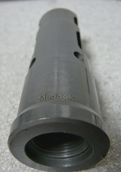 買い置きのハイダーの出番がきました。UFCのSF MB556Kタイプハイダー(逆ネジ)です。以前他社の銃口がやたら狭いMB556Kタイプハイダーで四苦八苦した直後に買ったもの。こちらは何年も前から正ネジタイプがマルイスタンダードM4の先に付いてて普通に使えてるので弾が銃口にぶつかるような事も無いハズです。