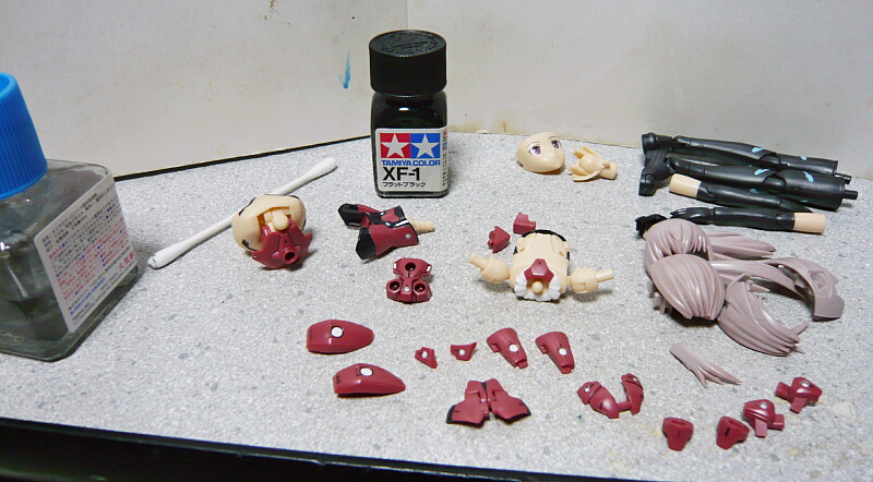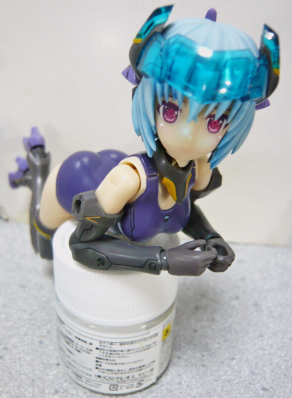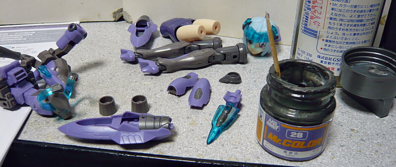 メカ部分のスミ入れは黒でやりましたが、髪と同じドドメ色でもよかったかも?