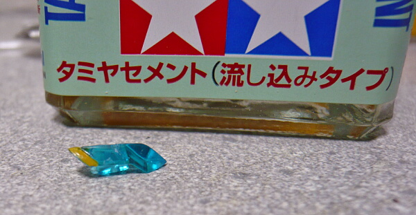 このパーツは上側から剥がそうとすると折れますので黄色に塗った位置の下にカッターの刃を差し込んで下から剥がした方がよいです。接着剤で補修しますがあまり目立つ部分でなくて良かった・・・