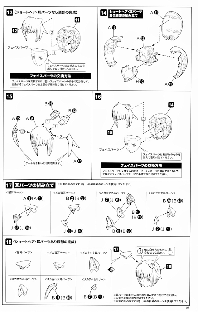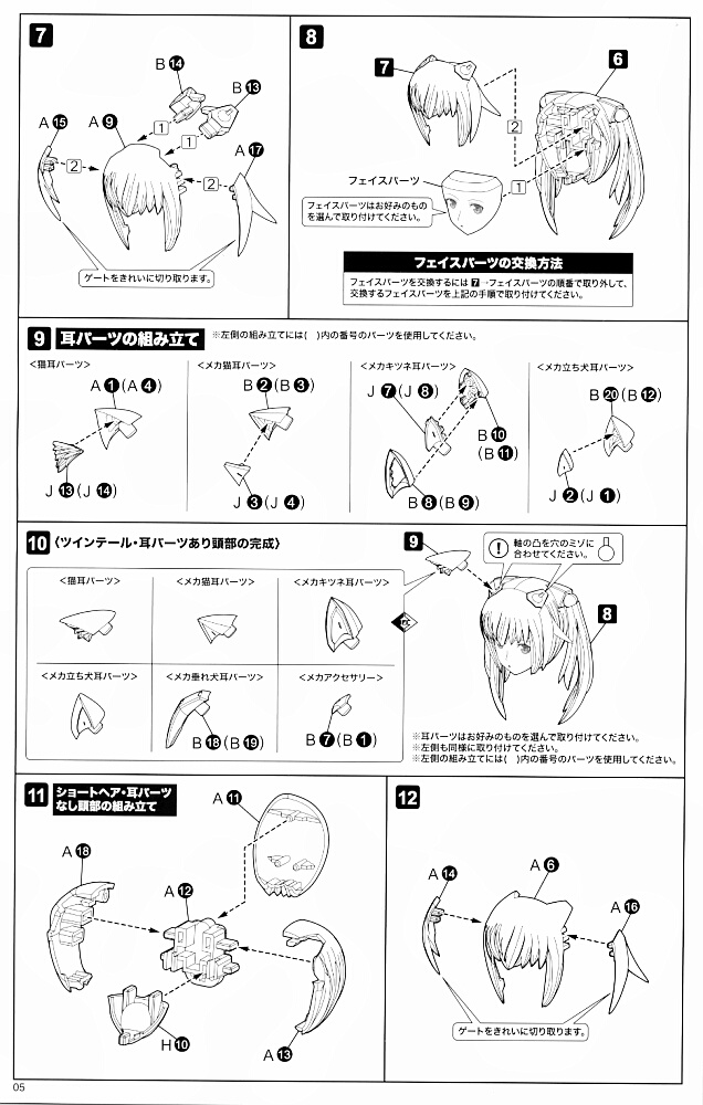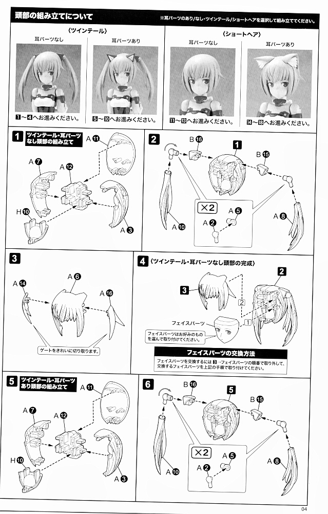 一旦仮組み。眉の角度や目との距離は好みによりますが、目から遠いと柔和に、近いとドヤ顔っぽくなる・・・ハズです。