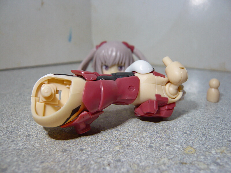 次に胴体。構成はマテリアや迅雷と大体同じですが、肩関節の胴体側が改良され前後方向に大きく動くようになりました。といってもメガミデバイスのように関節を増やしたものではなく、ボールジョイントを引き出して可動範囲を拡大させるタイプ。