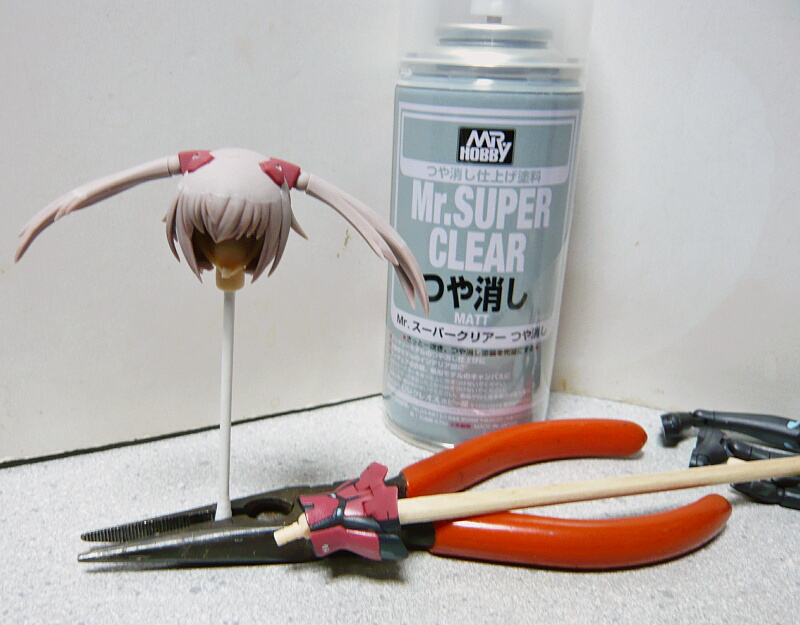 頭部の顔以外と、胴体の中間部分のみ薄めにつや消しトップコート。髪はつや消しにしますが、胴体はミッドナイトブルーのテカリを半光沢に出来れば良しとしておきます。
