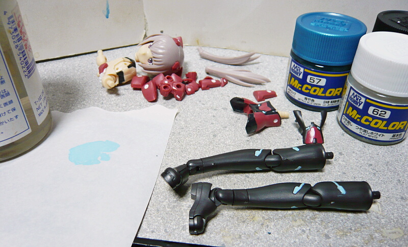 ラッカー塗料の締めとして水色部分。白に青竹色をちょっぴり混ぜたもの。
