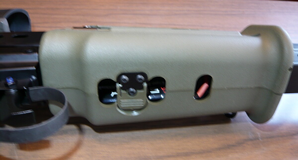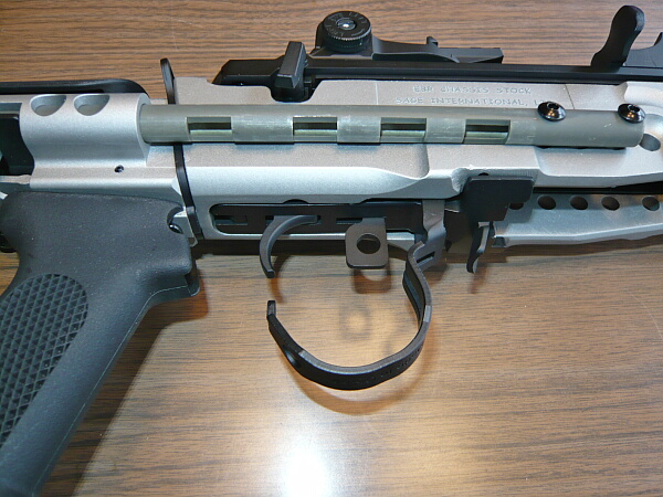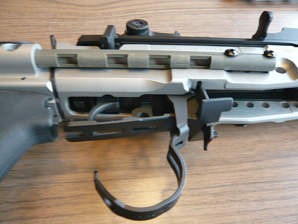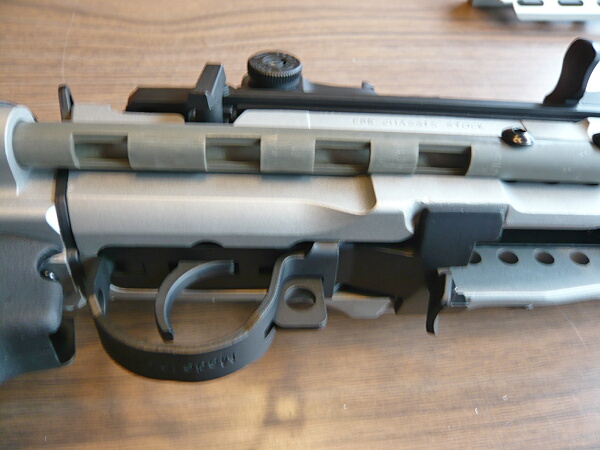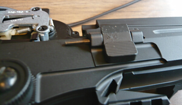 コッキングレバーを引くと一緒に下の棒が後退します。大まかな機構としてはAKのを上下逆にした印象。