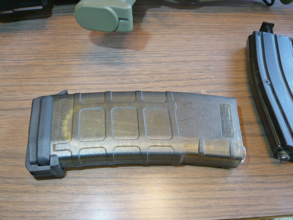マガジンは多弾だと多すぎるのでスプリング式のもので。手近にあったマグプルP-MAG。とりあえず50発くらいいってみようか。