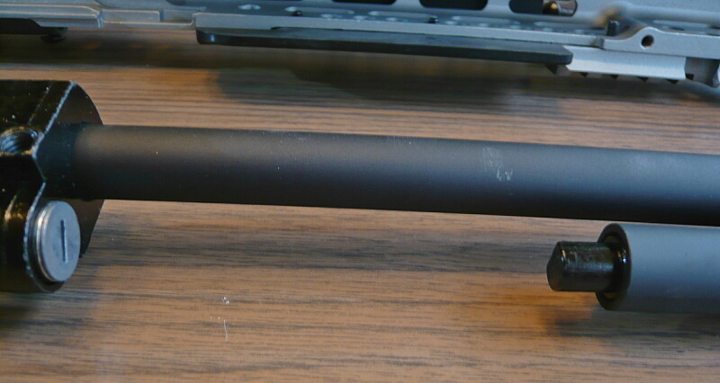 アウターバレルも特に曲がりはみられません。中でインナーバレルがブレないように肉厚なものになっています。材質はアルミだろうか?鉄ではありません。