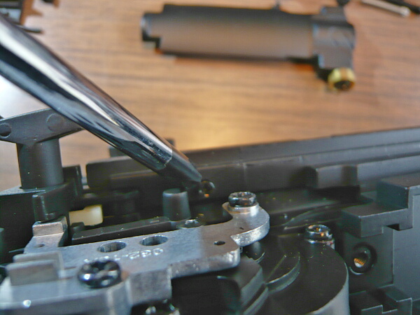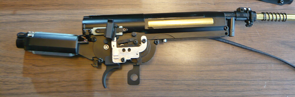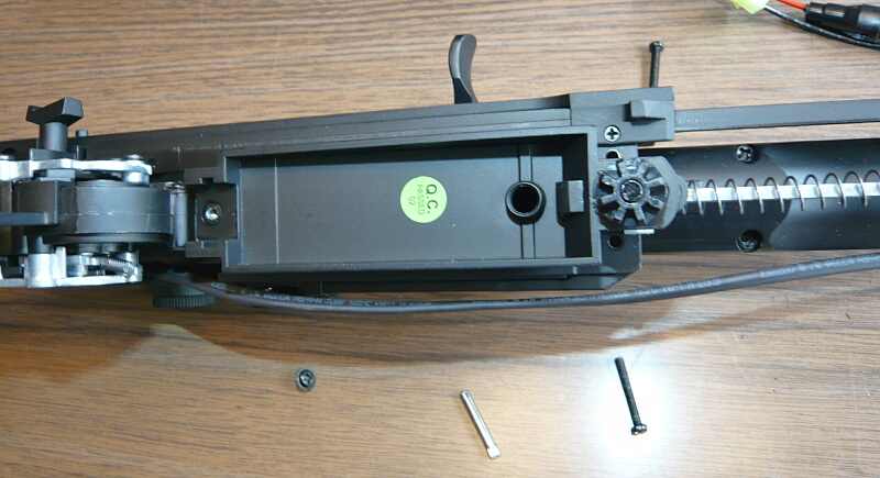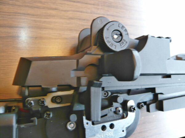 実射をしてみたところ大幅に左に飛んでいるので調整をすべく分解をします。ただし動作性自体は特に問題が無いのでメカボックスまでは開けません。