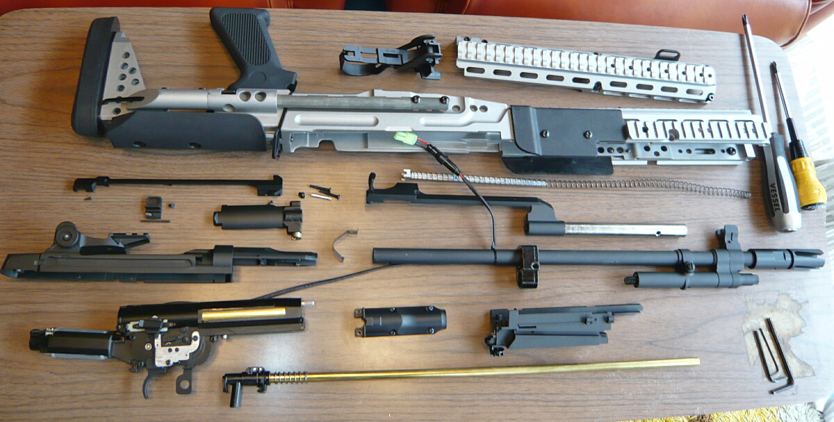 レシーバー一式はモーターの取り付き角度以外は大体マルイM14と同じなのであとはマルイM14の分解方法を参考にできます。