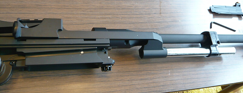 するとシャーシとレシーバー一式の連結が解けるのでアウターバレル側を持ち上げて後部を引きずり出すような感じでレシーバーが分離できます。