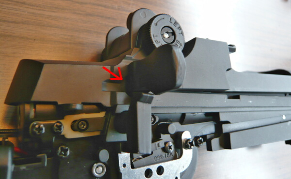 コッキングレバー後半の後端をセレクター上の丸いくぼみに差し込んで前方にスライドさせるとコッキングレバーが取り付きます。
