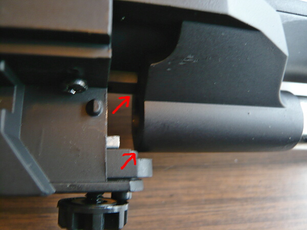 下の棒の先端が当たる部分はスプリングのテンションで少し出っ張っています。