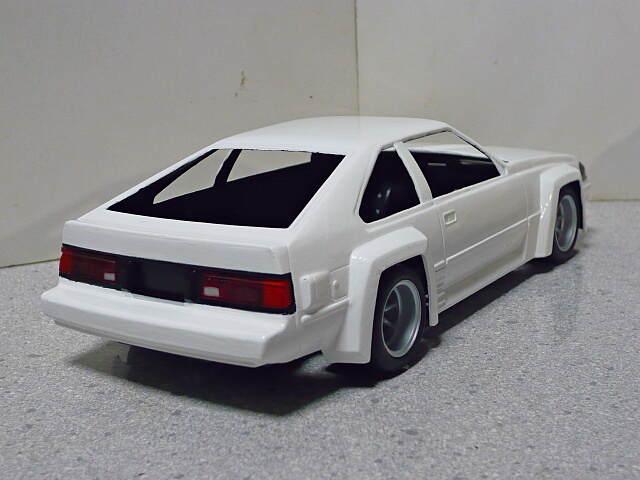 ウインカーをなんとか無理やりでっち上げてボディを塗装し、 テールランプ周りが大雑把に形になりました。 あんまり進んだ気がしません。 花粉が出だしたのか鼻水ダラダラです。 ポリッシャーの粉塵も結構キます。