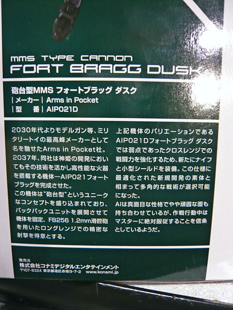 かなり前の商品であり頭部と武装のみであったフォートブラッグが