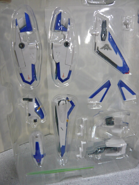 ファイターモード。機首両脇の双胴、前進翼、青白カラーと