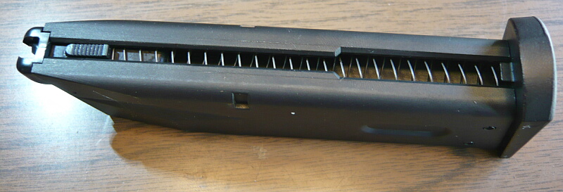 マガジン前面にはスリットがあり、下2/5ほどの部分はスリットが広くなっています。フォロワーを一番下まで下げると広くなったスリットから弾を流しいれる事ができます。