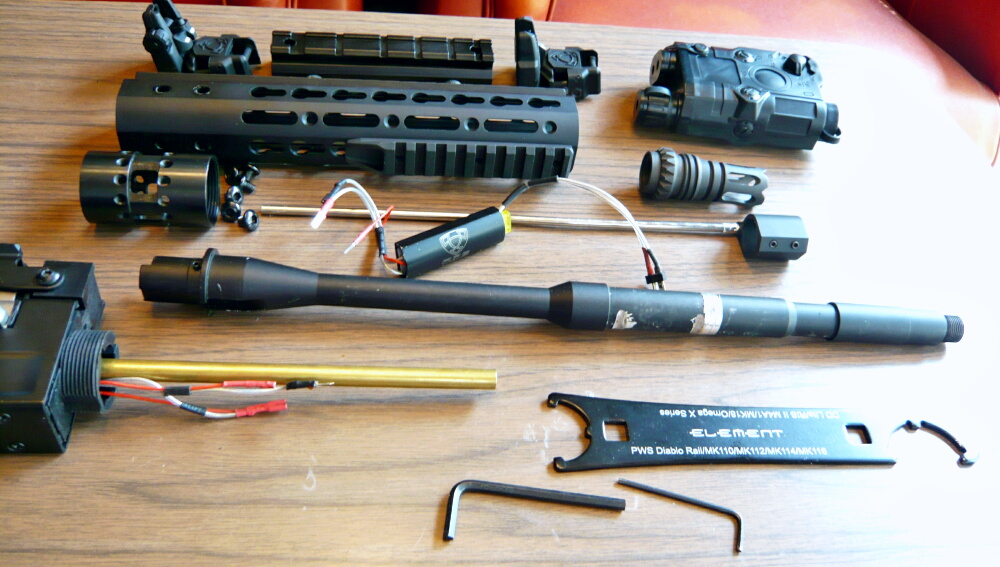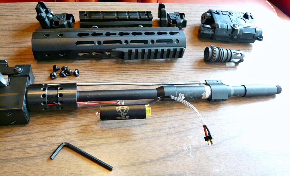 レシーバー周りを組みますがこの銃はメカボックス上の樹脂製のカバーが小さいネジ1個だけで固定だとか、配線が噛んで中々定位置に来なくて嫌な部分。おまけにFETがでかくて工夫しなけりゃいけないのも忘れていました。こんなデカイのをトップカバー内に配置していたらバッテリ―を収めるスペースがありません。
