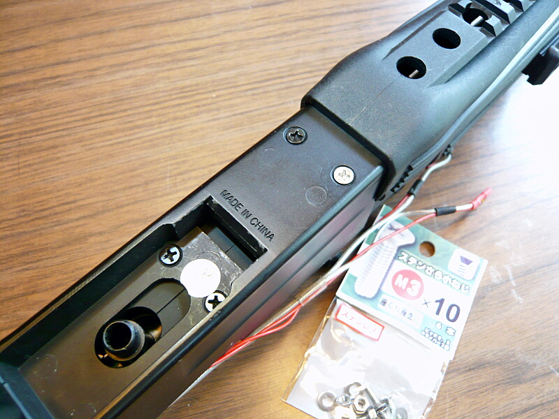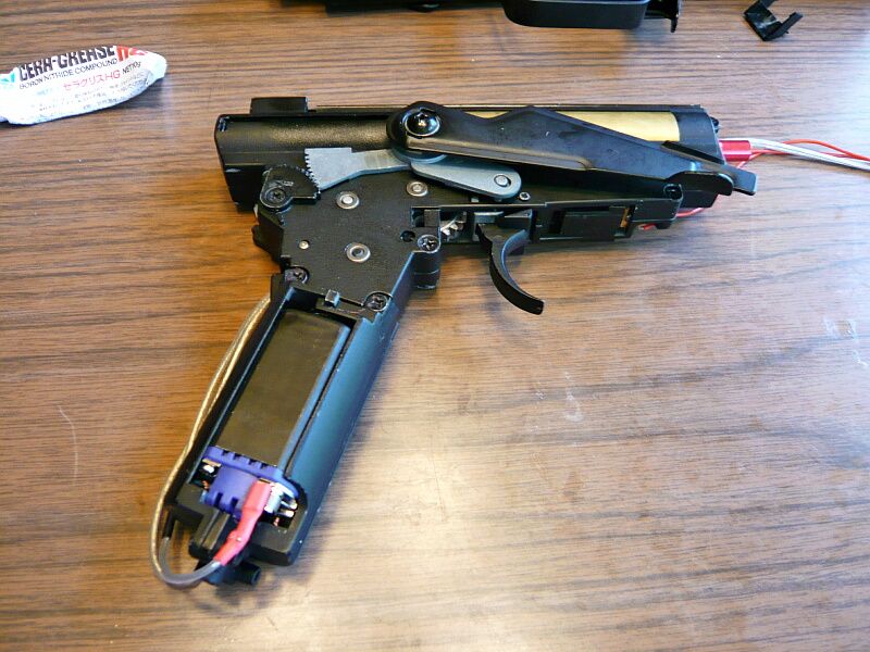 ストックは後にして、撃てる状態にします。バッテリーを繋ぎ、ちゃんと動作する事を確認。