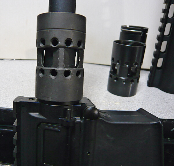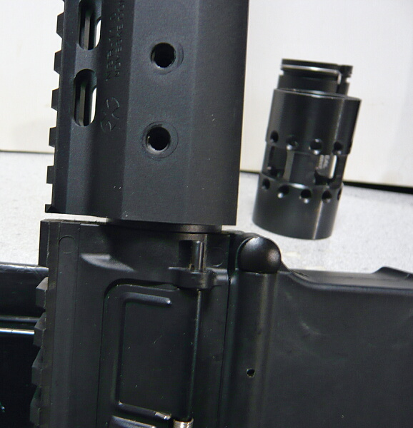 ハイダーを取り付けて出来上がり。ハンドガード前端はハイダーのちょっと後ろまで伸びています。