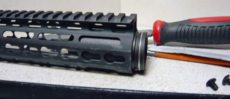 何故かというと、この11インチのKeyModハンドガードはバレルナットがそれ以上入り込まないように内側に段差をつけているため。お節介な!
