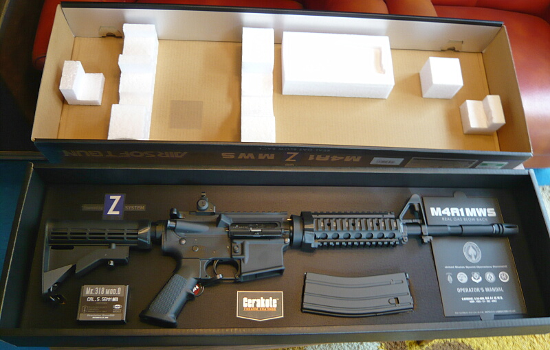 開封。次世代電動ガンほどには高級な梱包ではありませんが、どうせ捨てちゃうんだからもっと安い箱でいいのに。