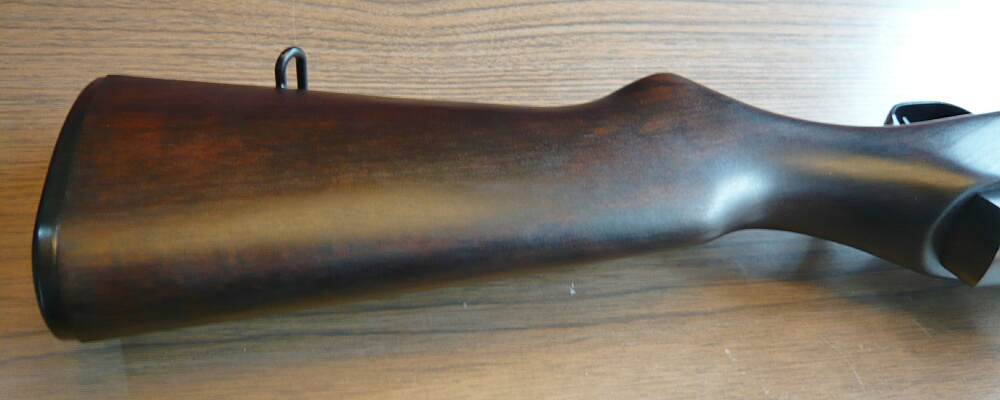「木製ストックの温かみ~」と言われてもピンと来なかったのですが、この銃の木製ストックは確かに温かみを感じる気がします。表面をニスでテカテカに固めていたり家具調になるまで仕上げたりはしていないからでしょうか。