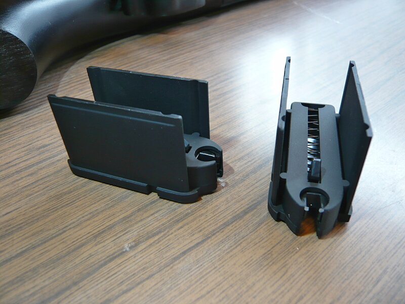 銃本体左右。色はダーク2ブラウンとありますが見本だともっと明るい茶色だったので、第一印象は「黒っ」こんな黒い木製パーツの銃は初めて。