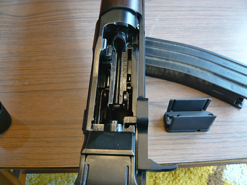 レシーバー後半部。マガジン式ではないのでトリガー前の部分は特に開閉などはしません。