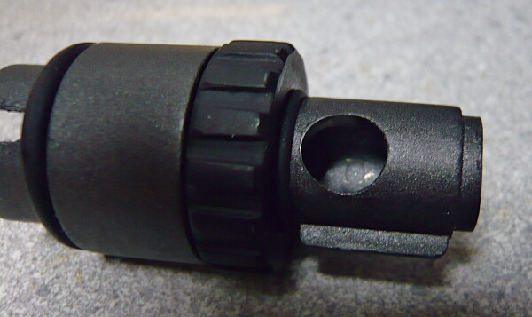 ノズル長と形状的には一見M4用っぽいですが内径が微妙に広く、逆にM4用ノズルはシリンダーヘッドのパイプに刺さりません。M4用など汎用はノズル内径5.45mmほどなのに対しこのSVD-Sのものは5.6~7mmほどあります。