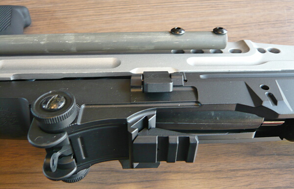 マガジンはAKのように前を引っ掛けてから後ろに引いてロックするタイプですが、AKよりはG3の方に近いかも?