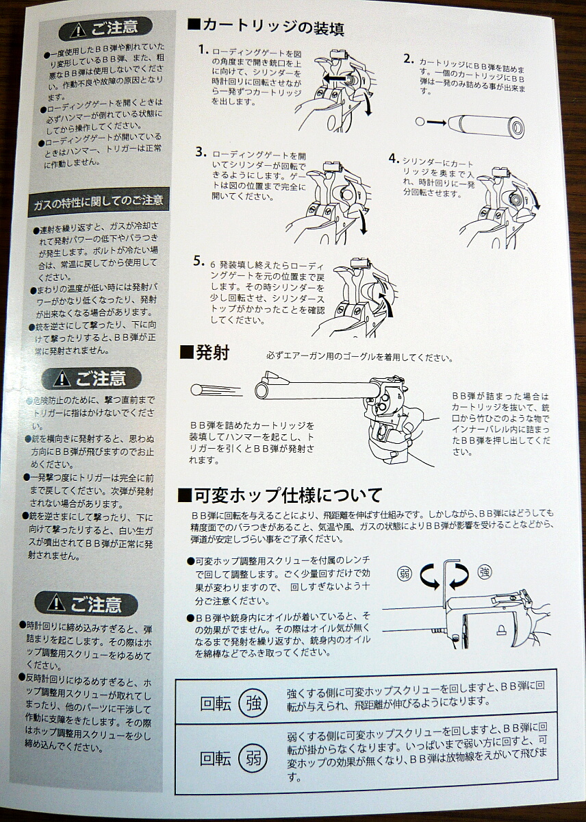 説明書は冊子になっています。他とは色々勝手の違う銃なのでよく読んでおきます。