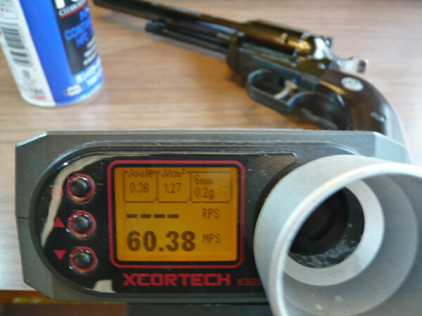 初速は60m/s前後で安定。冴えない初速?15mくらいの距離なら十分ですよ。飛びは素直で大体サイト通り狙った所へ全弾飛んでゆきます。ハンマーを起こしてゆくとトリガーがググッと後退しますがコックしたところで前方へ戻ってしまい、5mmくらいの重くもなく軽くもない、リボルバーのシングルアクションとしては長めに感じるトリガー。ダブルアクションリボルバーのシングルアクションってストロークしたかな?と思ったら即落ちるくらいストロークが短いもの、という先入観があると少しこのトリガーは少し違和感があり、逆に92Fなどオートのトリガーに慣れているとしっくりくるのかもしれません。