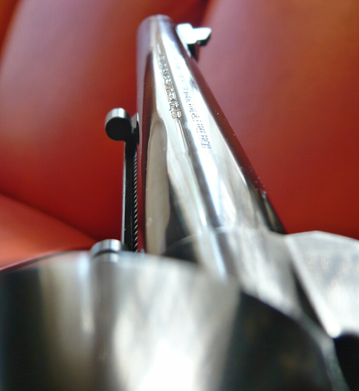 バレル左面には刻印があります。刻印モールドの上にメッキされていて元のシャープな刻印が少しダレてはいますが、光沢面を荒らす事なく刻印の存在を主張しています。